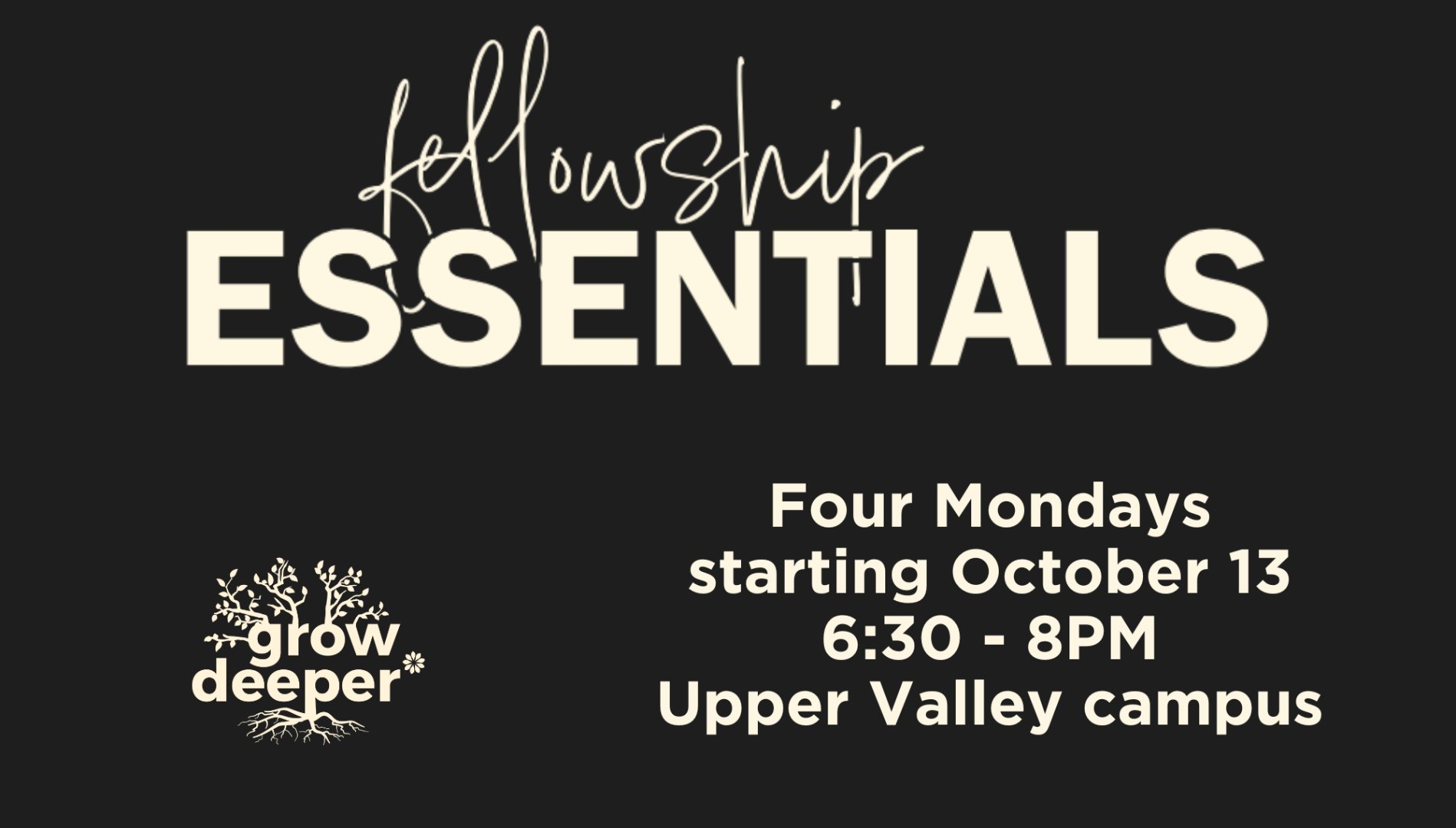 Mondays, October 13, 20, 27 & November 3 // 6:30-8PM // Upper Valley campus // This four-week course explores HOW to be a lifelong follower of Jesus. It’s a deeper dive into core practices that help us spend time with Jesus, become more like Jesus, and do the things that Jesus did. Whether you’ve attended Fellowship for years or only a few weeks, this is important equipping for your personal discipleship journey. Please register through 10/13: