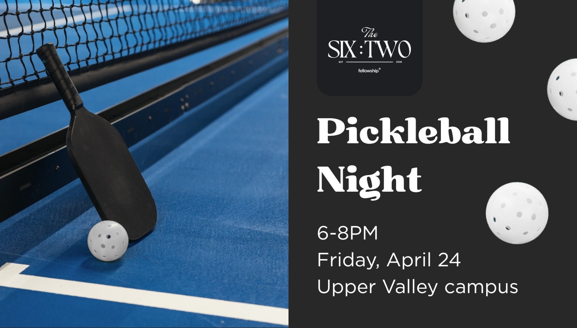 Friday, April 24 // 6-8PM // Upper Valley campus // Designed to offer our young adults (18-29) a dedicated space for fellowship and fun, this evening is an excellent opportunity to gather, build stronger connections, and deepen relationships. Sign up: I’m here for pickleball and the post-game snacks!